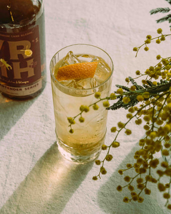 Dans un verre long drink rempli de glaçons, verser VRMH n°1, le sirop de rose et le jus de citron jaune pressé. Mélanger. Compléter d'eau gazeuse.