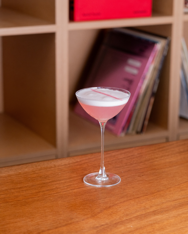 - Dans un shaker rempli de glaçons, verser JNPR n°1, la poudre de sakura, le jus de citron, le sirop de sucre, le sel et le blanc d'oeuf.