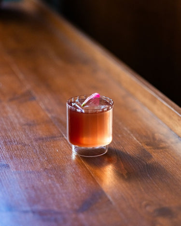 - Verser le mélange dans un verre tumbler bas en filtrant les glaçons.